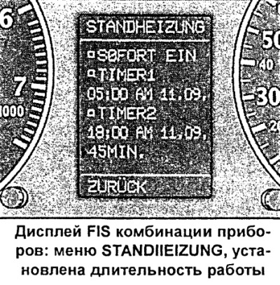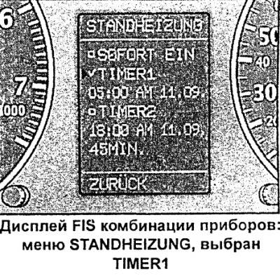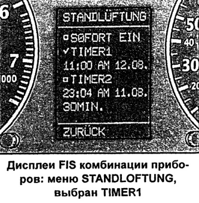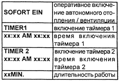 - У меню STANDHEIZUNG (аўтаномны ацяпліцель) або STANDLUFTUNG (аўтаномны вентылятар) абраць актуальны таймер.
