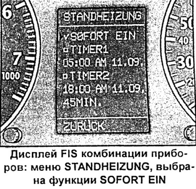 - У меню STANDHEIZUNG (аўтаномны ацяпліцель) або STANDLOFTUNG (аўтаномны вентылятар) абраць радок SOFORT EIN (аператыўнае ўключэнне).