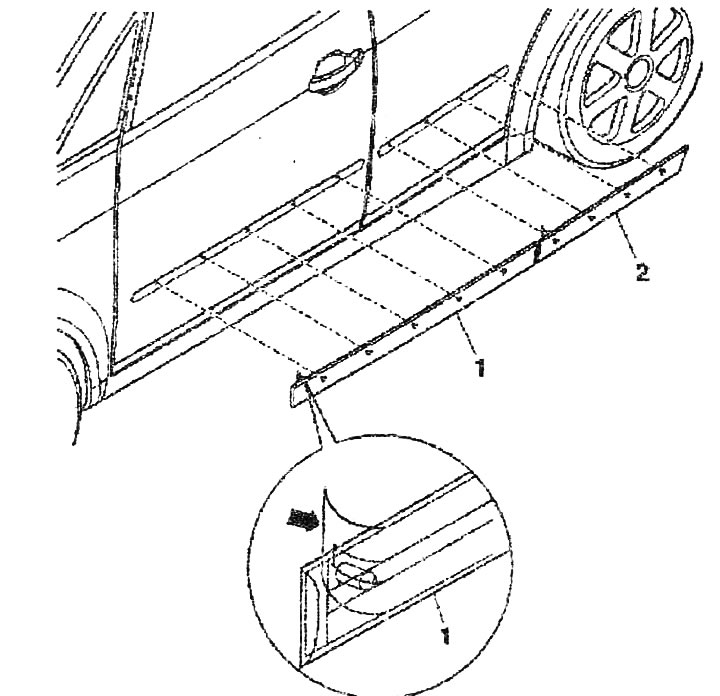 2. Задний молдинг. Установка идентична переднему молдингу.