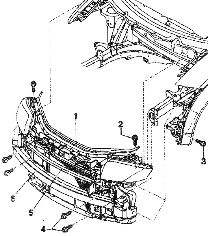 Снять бампер. Снять шумоизоляцию. Снять гибкий трос в оболочке замка капота. Отсоединить штекерные разъемы. Снять поперечину бампера и усилитель. Отвернуть конденсатор кондиционера от радиатора. Отвернуть осушитель кондиционера от рамки радиатора. Отсоединить конденсатор только от радиатора (магистрали не отсоединять). Разжать быстродействующие зажимы радиатора. Отклонить радиатор вниз и вынуть его по направлению вверх из резиновых подушек. Закрепить радиатор на блоке цилиндров, например, сварочной проволокой. Для того чтобы держать рамку радиатора требуется второй механик. Снять рамку радиатора по направлению вперед. Прикрепить конденсатор кондиционера проволокой, например, к переднему колесу.