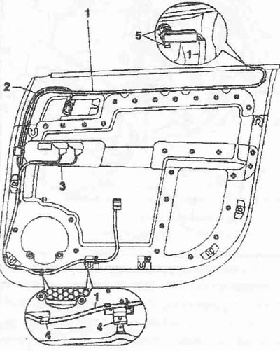 3. Кабель выключателя стеклоподъемника и регулятор положения зеркал заднего вида