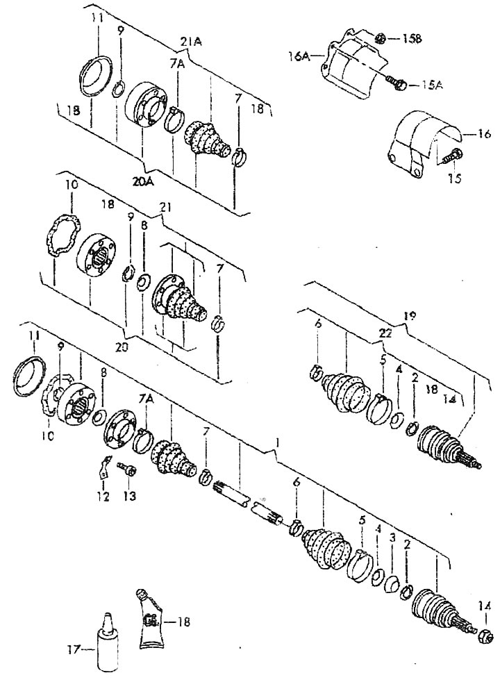 19. Приводной внешний вал с ШРУСом и монтажными деталями