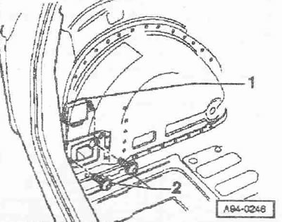 Выкрутить болты «2». Извлечь блок управления парковочного ассистента «3446» поз. «1» вверх. Отсоединить разъемы.