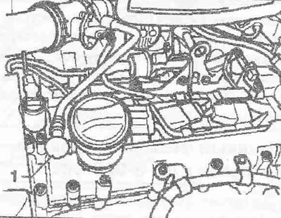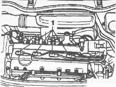 Отсоединить разъем свечей зажигания «1» и разблокировать провода. Открутить свечи зажигания свечным ключом 3122 В. Ввинтить новые свечи зажигания свечным ключом. Проверить надежность крепления проводов зажигания и свечных наконечников.