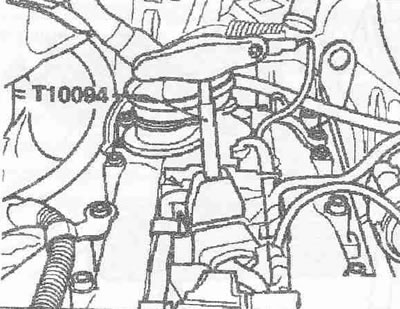 Снять съемником «Т10094» катушки зажигания с креплений. Извлечь при выключенном зажигании разъемы катушек зажигания. Открутить свечи зажигания свечным ключом 3122 В. Ввинтить новые свечи зажигания свечным ключом. Посадить катушки зажигания с подсоединенными разъемами на свечи зажигания. На двигателях FSI установить магистраль «1» на маслозаливную горловину. Учитывать положение резиновой насадки на маслозаливной горловине (негерметичности). Свечи зажигания в ГБЦ: 30 Нм.