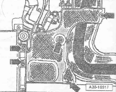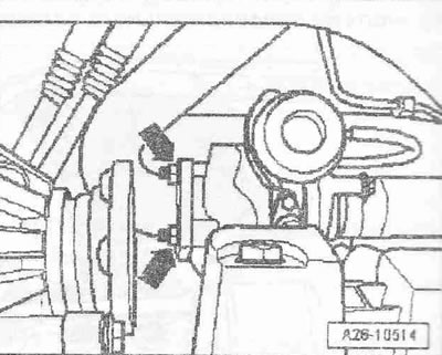 Отвернуть все гайки «стрелки» резьбовых соединений системы выпуска ОГ к турбокомпрессору.