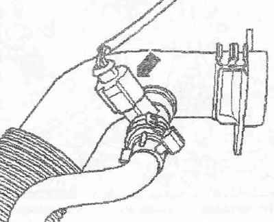 Снять шланги подачи ОЖ с расширительного бачка «стрелки» и раскрепить верхний шланг подачи ОЖ.