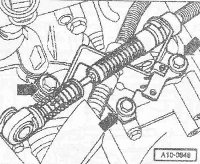 Осторожно! Фиксаторы троса нельзя снимать рычагом вала переключения или промежуточным рычагом. Если фиксаторы троса были сняты, то их необходимо заменить.