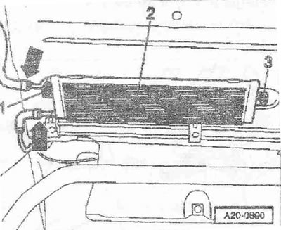 Снять топливные магистрали с охладителя топлива «стрелки». Открутить гайки «1» и «3» и снять охладитель топлива «2».