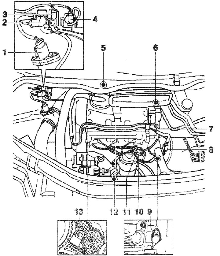 Места установки деталей и узлов впрыска (двигатели AMF):