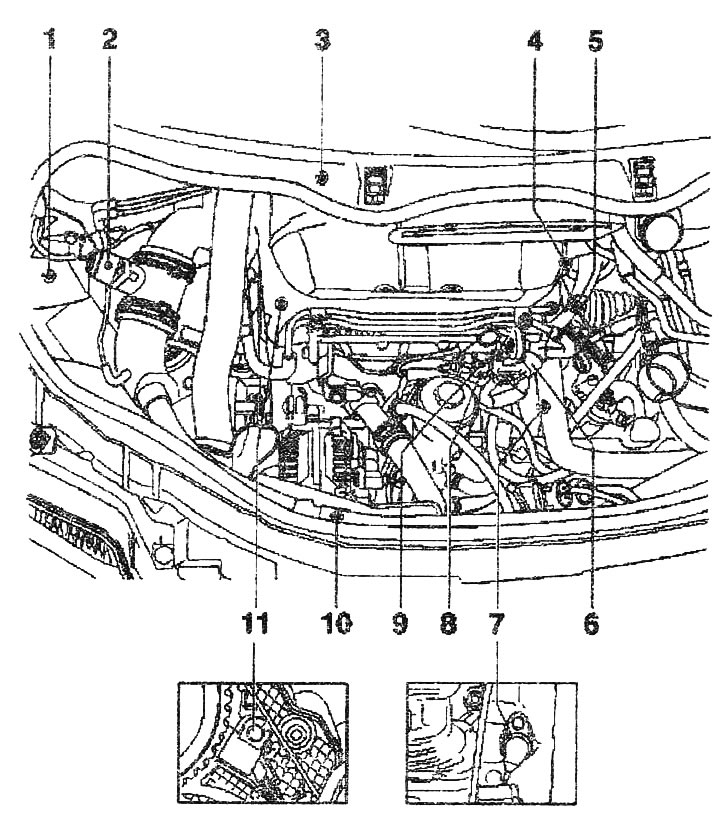 Места установки деталей и узлов впрыска (двигатели BHC и ATL):