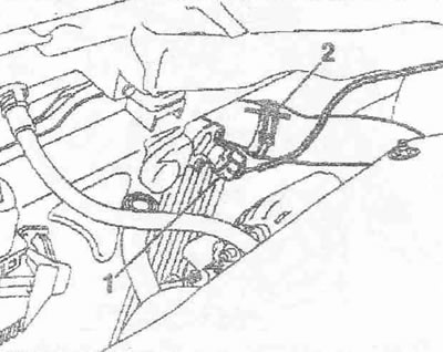 Снять воздушный шланг «2», соединяющий интеркулер и впускной коллектор. Поз. «1» не учитывать.