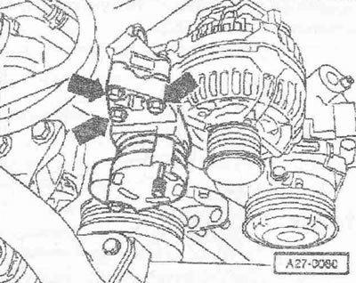 Отвернуть натяжитель поликлинового ремня «стрелка».