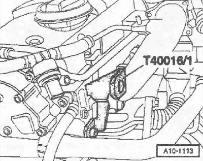 Инструкция. Если коленвал был провернут за ВМТ, необходимо сначала провернуть его на 1/4 оборота обратно, чтобы затем вновь установить в ВМТ по направлению вращения двигателя. Корректировка против направления вращения двигателя для установки стопора коленвала «Т10050» недопустима.
