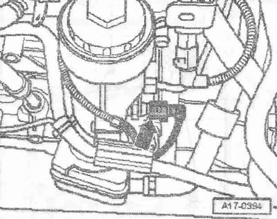 Установка в обратном порядке, при этом необходимо заменить манжету. Проверить уровень масла. Момент затяжки: Датчик давления масла к держателю масляного фильтра: 20 Нм.