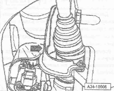 Отклонить амортизационную стойку наружу и снять приводной вал с полуоси с фланцем. Подвязать приводной вал к лонжерону.