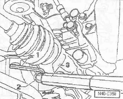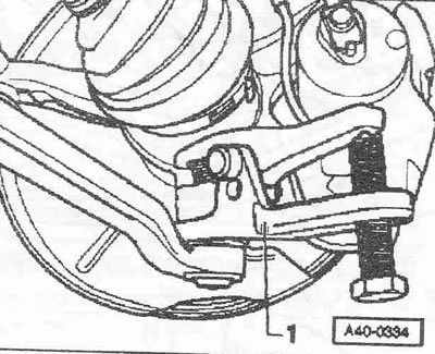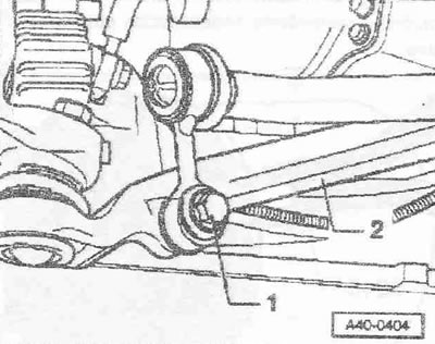 Отвернуть болт «1» крепления соединительной тяги на несущем рычаге «2».