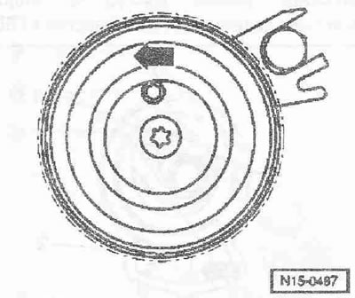 Повернуть натяжной ролик торцовым ключом против часовой стрелки «стрелка» и снять зубчатый ремень.