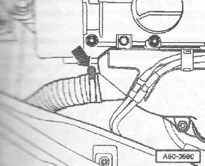 Снять шланг для предварительного нагрева всасываемого воздуха с теплозащитного экрана «стрелка».