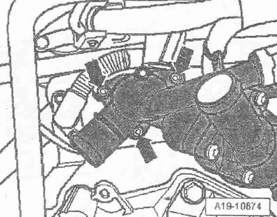 Вкрутить кронштейн «Т10014», как показано на рисунке, с моментом 40 Нм в резьбовое отверстие в блоке цилиндров.
