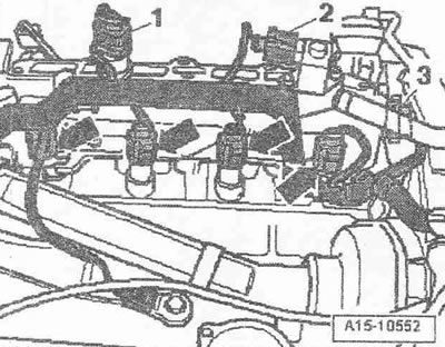 Отсоединить разъёмы «1. 2, 3» и «стрелки», свободно уложить жгут проводов на головке цилиндров.