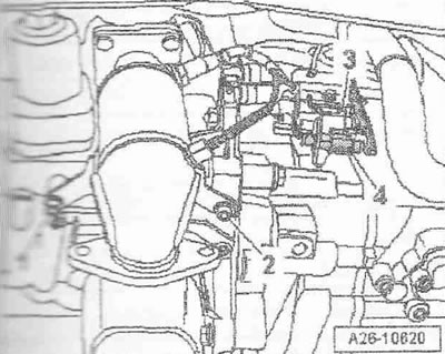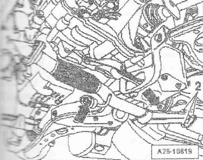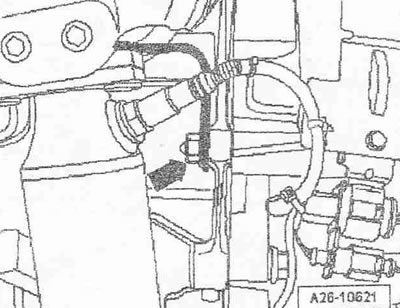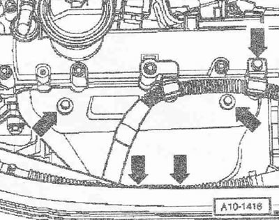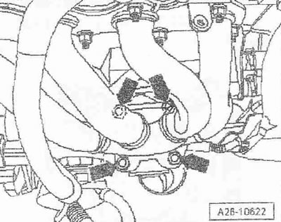 Снять капот двигателя. Снять шумоизолирующий кожух, ослабить для этого крепежные детали. Не изгибать размыкающий элемент в передней приемной трубке более чем на 10°.