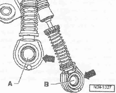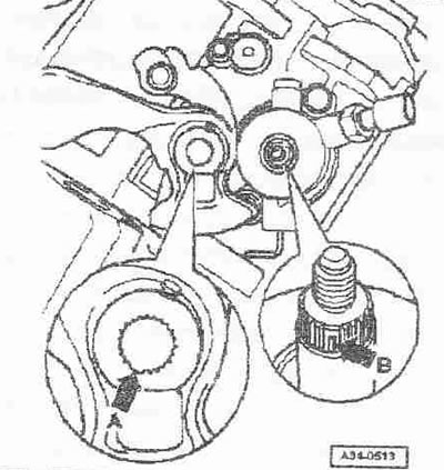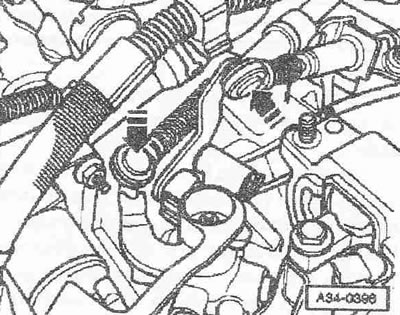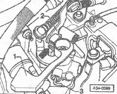 Нанести небольшое количество поликарбамидной смазки «G 052 142 А2» на сферический вкладыш фиксатора троса включения передач «А» и троса выбора передач «В». Уплотнения «стрелки» вне шаровых опор не должны содержать смазки.