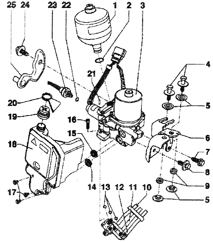 25. Кронштейн крепления гидравлического управляющего блока на кузове