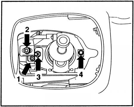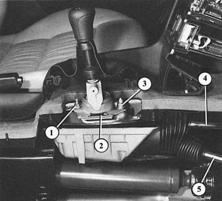 - 1 i 3 - nakrętki mocujące obudowę mechanizmu zmiany biegów kulowych (2);