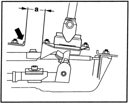 Regulacja dźwigni zmiany biegów w położeniu poprzecznym: oba występy ogranicznika kulowego muszą znajdować się w tej samej odległości "a" od obudowy kuli.
