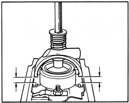 10. Ustaw dźwignię zmiany biegów pionowo, lekko pochyloną do tyłu, tak aby oba występy ogranicznika kulowego znajdowały się w tej samej odległości od obudowy kuli.