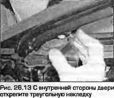 13. Od wewnętrznej strony drzwi odkręć trójkątną listwę. Zdejmij uszczelkę piankową (rysunek 26.13).