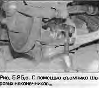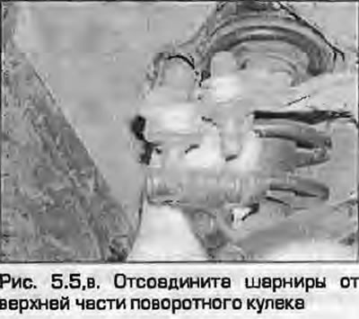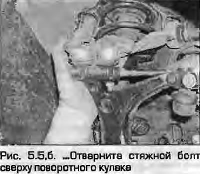 5. Odkręć nakrętkę mocującą i wyjmij śrubę mocującą obejmę z górnej części zwrotnicy. Oddziel sworznie kulowe górnego wahacza od zwrotnicy. Aby ułatwić wyjęcie kołków podporowych, nie należy używać śrubokrętów ani dłut do otwierania szczeliny (rysunek 5,5, a-b). Staraj się nie uszkodzić okładek.