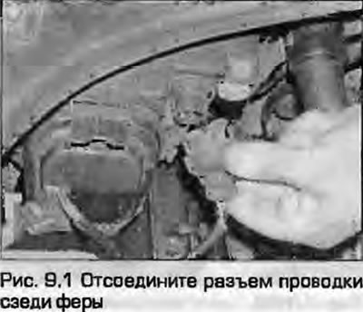 5. Podnieś reflektor, przechyl go do przodu i zdejmij z panelu przedniego (rysunek 9.5).