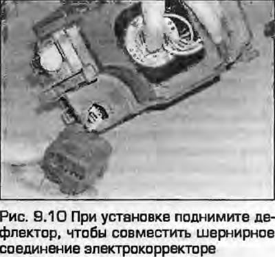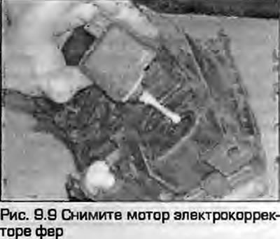 9. Przechyl silnik na bok tak, aby zawias na wałku regulacyjnym odłączył się od gniazda na reflektorze. Wyjmij silnik (rysunek 9.9).