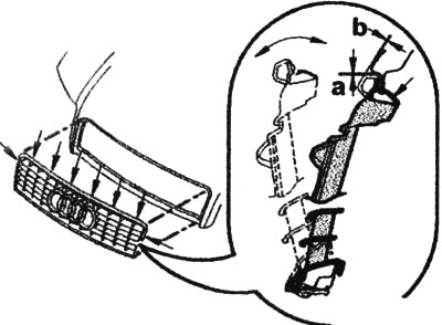 Osłona chłodnicy: rozmiar a = 1,5±0,5 mm; rozmiar b=0,7±0,5 mm