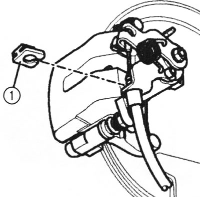 2. Odkręć śruby mocujące z obudowy zacisku hamulcowego. W tym przypadku konieczne jest przytrzymanie sworznia prowadzącego kluczem płaskim.