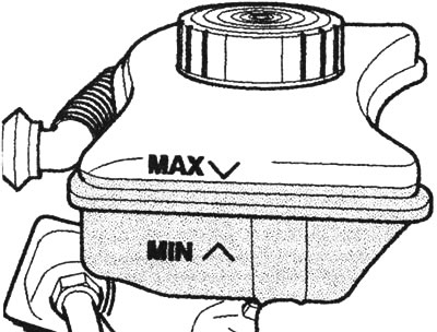 3. Jeśli poziom płynu hamulcowego spadł, ale nadal mieści się pomiędzy znakami maksimum i minimum na zbiorniczku, nie ma powodu do niepokoju.