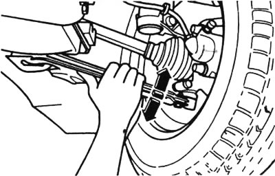 4. Sprawdź luz osiowy, mocno pociągając ramię zawieszenia w dół, a następnie ponownie je podnosząc.