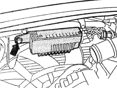6. Odkręć jednostkę sterującą wentylatora chłodnicy (strzałka), wyjmij ją i odłóż na bok.
