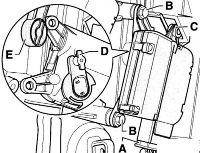 2. Odłączyć dźwignię silnika (C) od korbowodu (D) i wyjąć silnik.