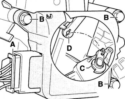 2. Odłącz złącze (A), odkręć śrubę (B) i wyjmij silnik elektryczny.
