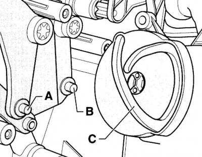 2. Odłącz silnik elektryczny od uchwytu (C).