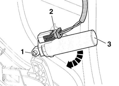 3. Otwórz schowek. Odłączyć złącze (2), wyjąć kołek (1), obrócić zgodnie z ruchem wskazówek zegara i wyjąć przełącznik (3).