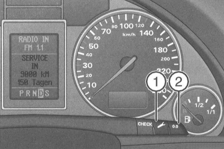 Kierowca jest ostrzegany 2000 km lub miesiąc przed terminem przeglądu za pomocą komunikatu świetlnego "SERVICE IN 2000 km xxx TAGEN" ("SERWIS PO 2000 km xxx DNI") po każdym włączeniu zapłonu. Pozostały przebieg przed serwisem można w każdej chwili sprawdzić na wskaźniku po naciśnięciu kluczyka (1).