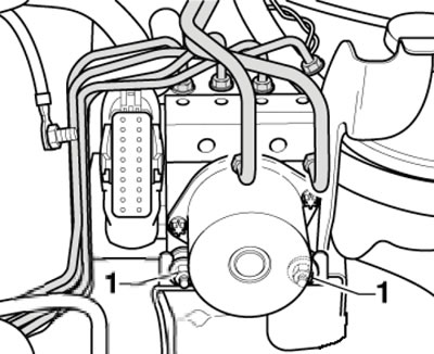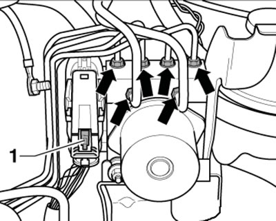 7. Odkręć śruby (1 na ilustracji) i wyjmij modulator hydrauliczny.
