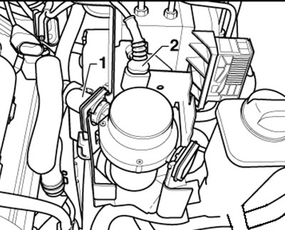 2. Zdejmij panel wykończeniowy, odłącz złącze (2 na ilustracji) i odłączyć wąż podciśnieniowy (1) od pompy.