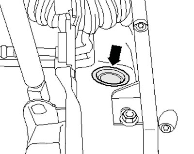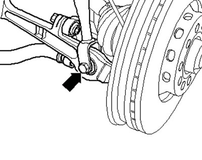 8. Odkręć śrubę (zobacz ilustrację) mocowania kolumn zawieszenia/wahaczy podporowych. Odchyl osłonę łożyska koła na zewnątrz, odłącz wsporniki zbiornika wyrównawczego i zdejmij pokrywę rynny.