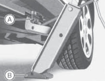 Uwaga: Podnośnik przeznaczony jest wyłącznie do krótkotrwałego podnoszenia pojazdu, np. przy wymianie koła; przed przystąpieniem do prac pod pojazdem należy ustawić go na specjalnych, solidnych podporach. Podczas wymiany koła w pojeździe nie powinny znajdować się żadne osoby.