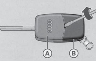 1.3. Wyjmowanie nadajnika (B) z kluczyka głównego (A)